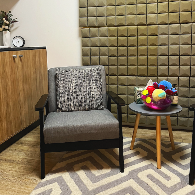 Our motto is: All of You is Welcome Here. At Palm Tree Psychology, we want our clients to feel safe to be who they are, while compassionately discovering new parts of themselves and developing skills to help live a meaningful life aligned with one’s values and goals. Our consulting space in Fairfield has been thoughtfully styled to help you feel calm and supported, with dimmable lights, a large variety of sensory grounding tools (a.k.a. figdet toys or fidget tools), and soft cosy blankets.